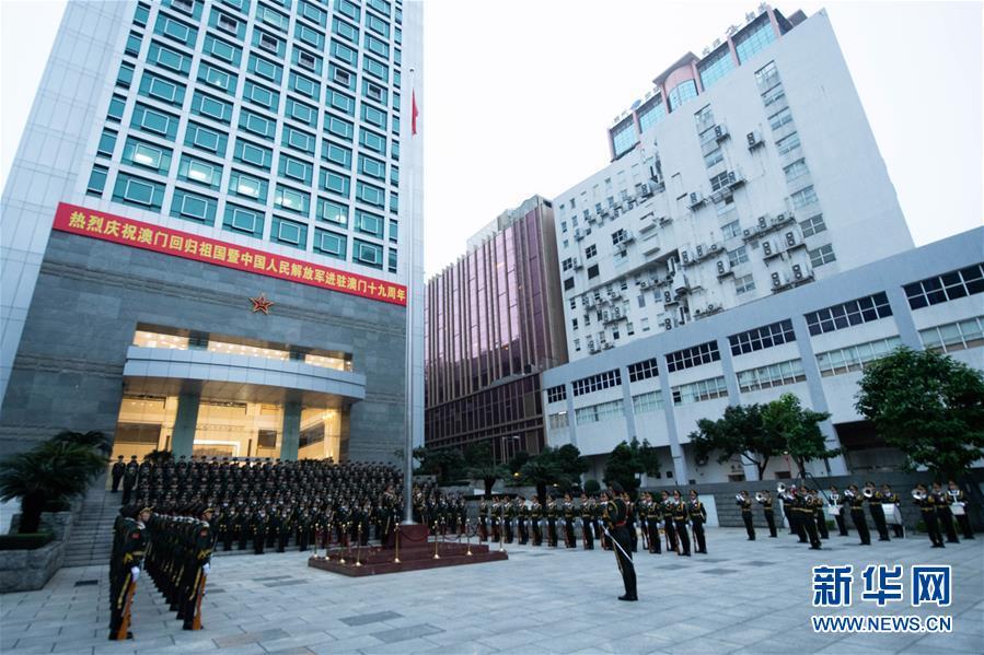 12月20日,中國人民解放軍駐澳門部隊在澳門新口岸營區(qū)舉行升國旗儀式,慶祝澳門回歸祖國暨中國人民解放軍進駐澳門19周年。 新華社記者張金加攝
