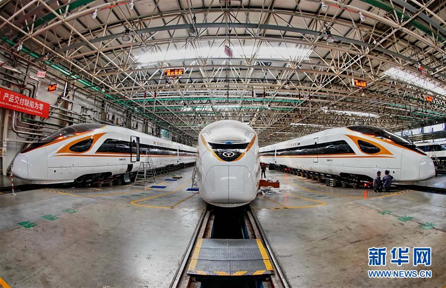 中車唐山機車車輛有限公司的工人在復興號動車組生產線上工作(3月23日攝)。  新華社記者楊世堯攝