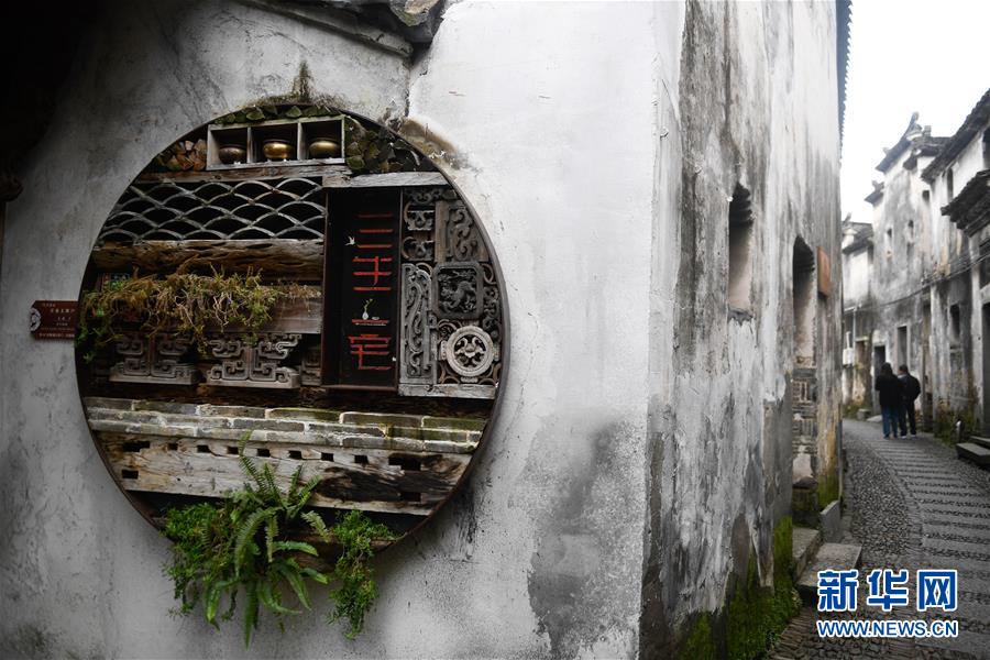 12月21日,游客在桐廬縣江南鎮(zhèn)深澳村的古巷游覽。深澳村有保存完整的古建筑群落,常年吸引大批游客參觀。