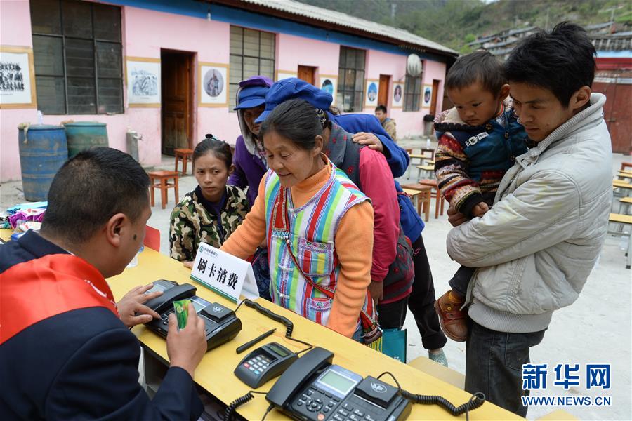 獨(dú)龍族群眾在辦理金融業(yè)務(wù)(2015年3月25日攝)。  新華社記者 胡超 攝