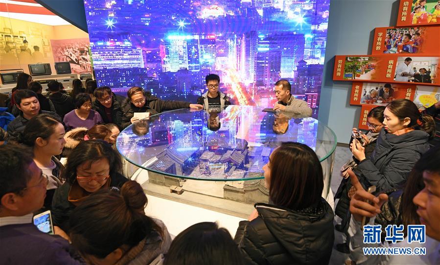 12月21日,觀眾在觀看老北京四合院微縮模型。
