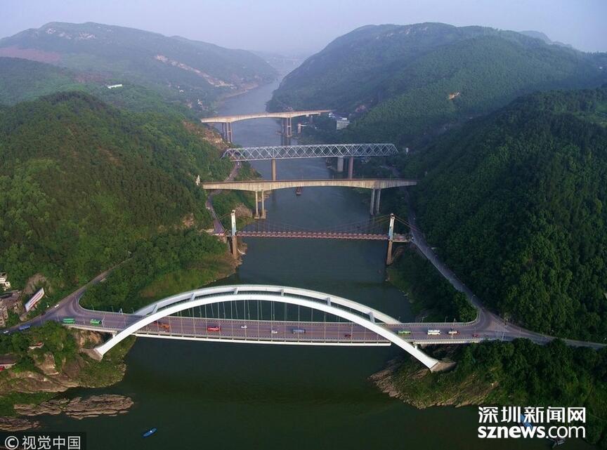 2018年5月18日,重慶,在嘉陵江重慶觀音峽段,間隔不到1000米的江面上橫跨著五座大橋,形成了五橋“疊翠”的美麗景觀,生動(dòng)展示了“橋都”重慶的變化。