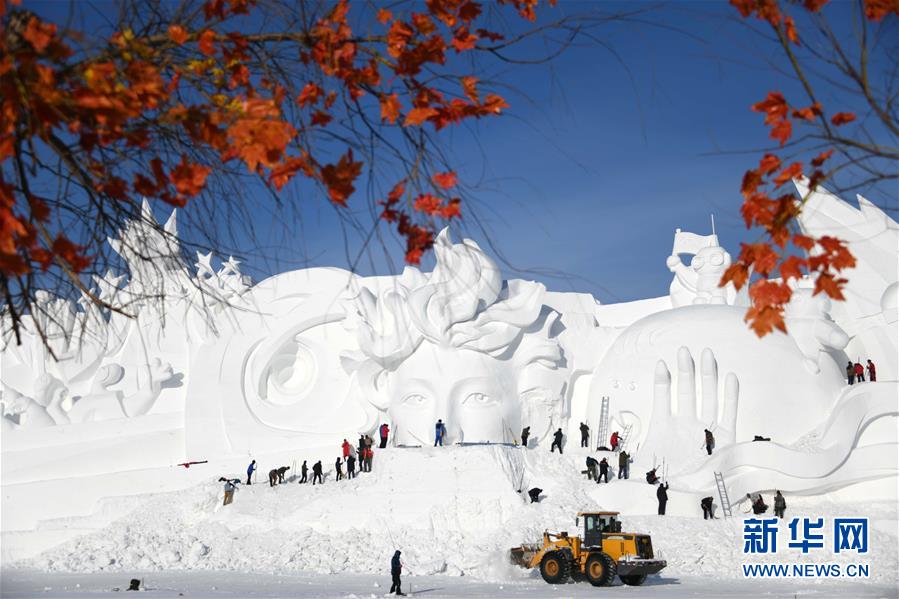 國內(nèi)最大的雪雕盛會(huì)太陽島雪博會(huì)正在緊鑼密鼓建設(shè)中,雪雕師正在精雕細(xì)刻打磨中。