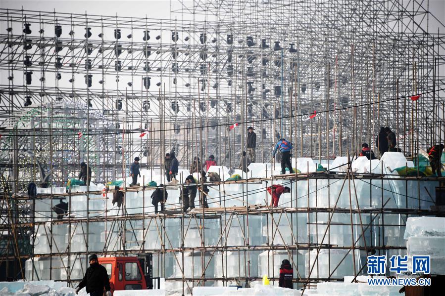 目前,以“筑夢(mèng)冰天雪地,共享金山銀山”為主題的第二十屆哈爾濱冰雪大世界正在施工,現(xiàn)場一片繁忙景象。 新華社記者 王建威 攝