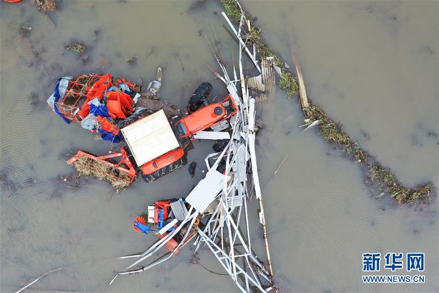 被海浪沖毀的各種汽車(chē)或卡在樹(shù)間或趴上殘墻。