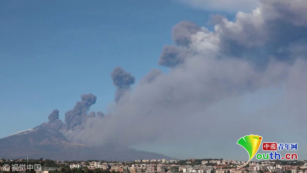 意大利埃特納火山持續(xù)噴發(fā) 黑煙滾滾