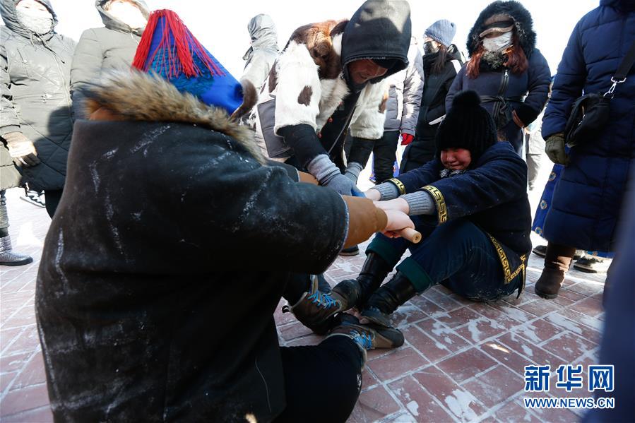 12月26日,牧民在進(jìn)行“扳棍”。 當(dāng)日,內(nèi)蒙古冰雪那達(dá)慕系列活動在呼倫貝爾市鄂溫克旗繼續(xù)進(jìn)行,牧民歡聚一堂,參加各種賽事和趣味項目。 新華社記者 虞東升 攝