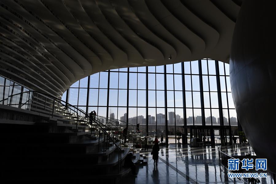 這是12月27日拍攝的天津濱海新區(qū)圖書館中庭。 濱海新區(qū)圖書館位于天津濱海文化中心,2017年10月1日正式開館,設(shè)計立意為“濱海之眼”和“書山有路勤為徑”。圖書館現(xiàn)有藏書60多萬冊,一年多來接待讀者約280萬人次,已成為濱海新區(qū)的文化“新地標(biāo)”。 新華社記者李然攝