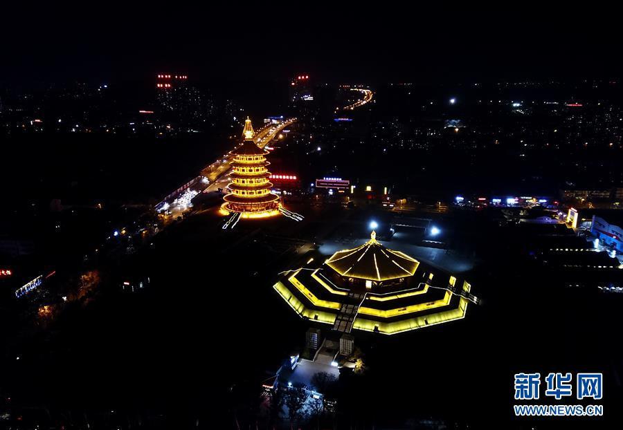 隋唐洛陽城國家遺址公園內(nèi)的明堂(右)和天堂(12月26日無人機拍攝)。新華社記者馮大鵬攝