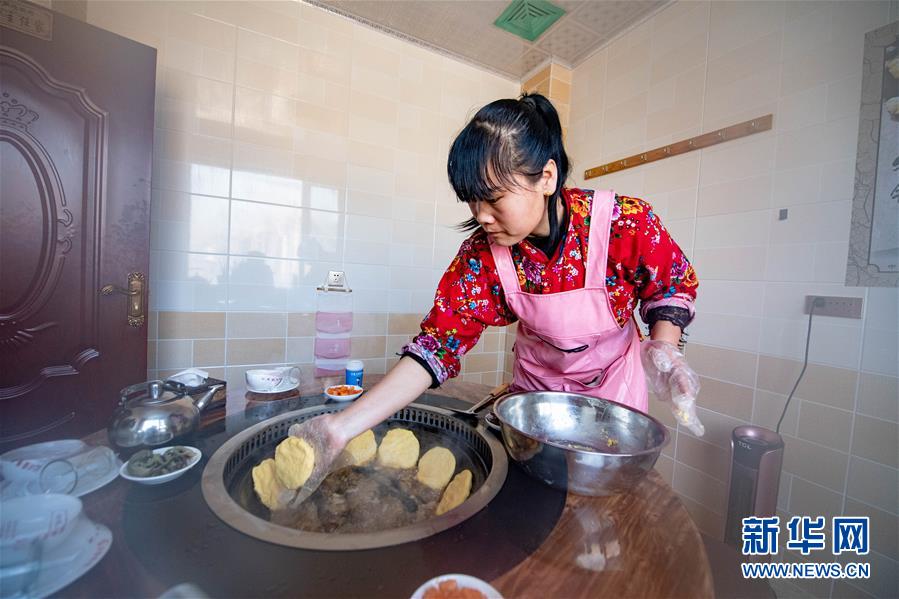 1月10日,在舒蘭市二合屯,農(nóng)家樂老板楊會為游客準(zhǔn)備東北特色菜肴。 新華社記者張楠攝