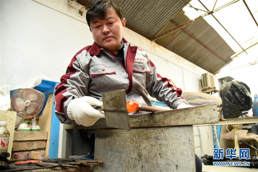 1月12日,孫云毅在展示他引入的電動(dòng)控溫設(shè)備,目前爐溫顯示1255攝氏度。 新華社記者王凱攝