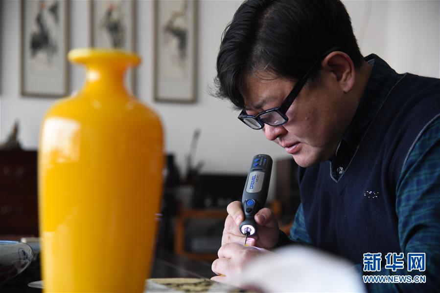 1月12日,孫云毅在制作雞油黃琉璃藝術(shù)品。  新華社記者王凱攝