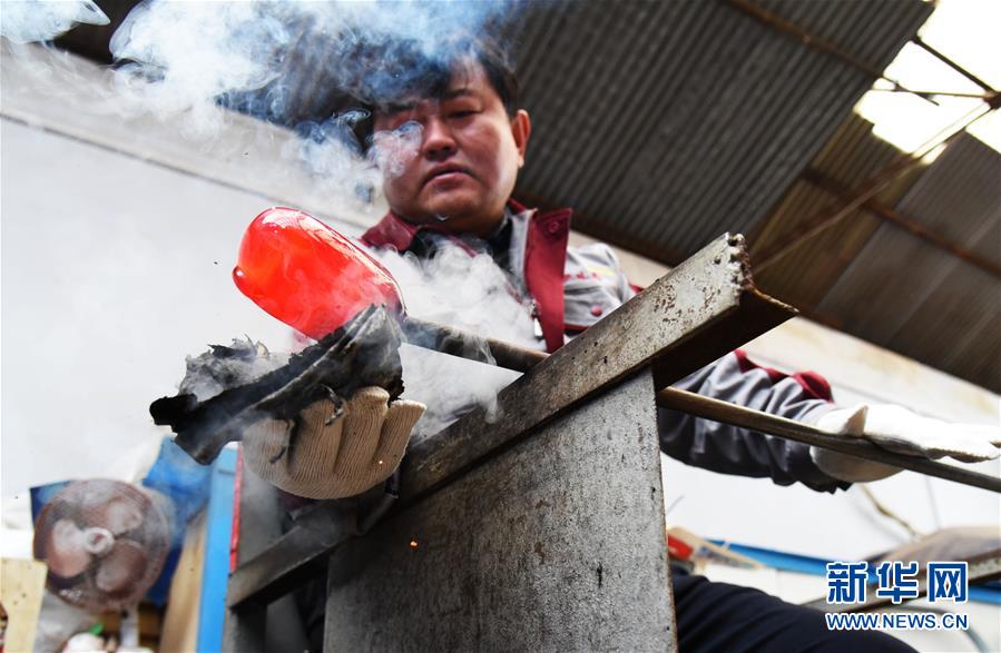 1月12日,孫云毅在制作雞油黃琉璃藝術(shù)品。  新華社記者王凱攝