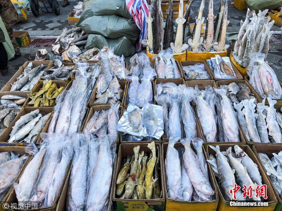 1月12日,黑龍江省佳木斯市撫遠東極魚市,撫遠東極魚市的凍魚。棋簿紫 攝 圖片來源:視覺中國