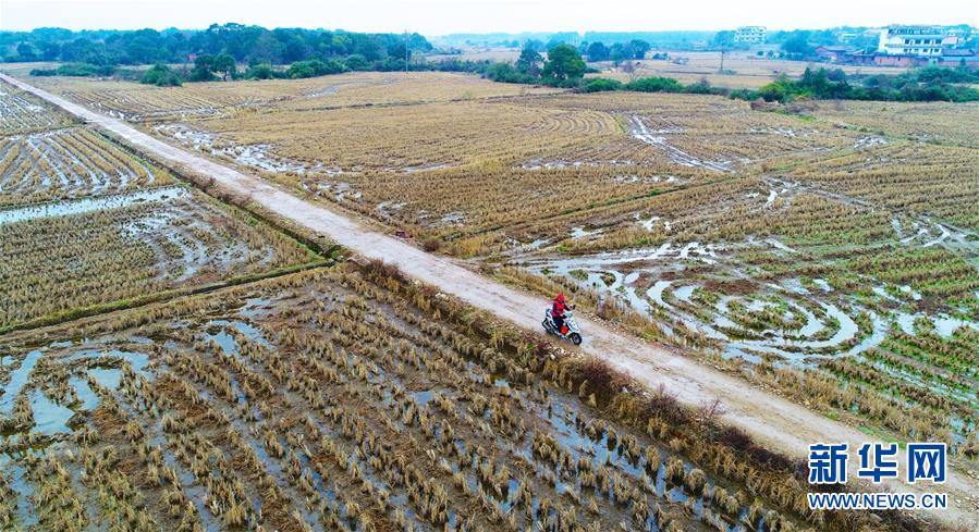 1月3日,章站亮騎摩托行駛在前往學(xué)校的路上(無人機(jī)拍攝)。 新華社記者 胡晨歡 攝