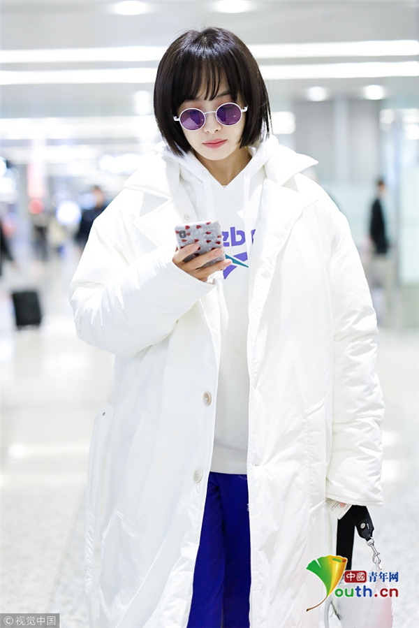 1月15日,上海,宋茜現身機場。她身穿白色羽絨服搭配紫色運動褲造型清爽有型,梳著齊耳短發(fā)秒變妹妹頭,可愛吸睛。抬腿扯褲腿動作呆萌,難道是秋褲沒穿好,要扯一下,這動作也是非常接地氣了。