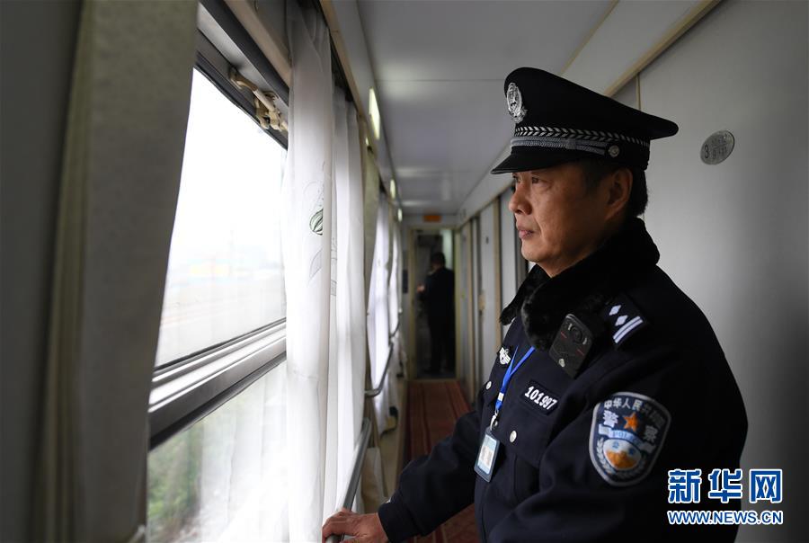 1月1日,在越南河內(nèi)(嘉林)開往中國南寧的列車上,乘警楊鐵鳴注視著車外。 新華社記者陸波岸攝