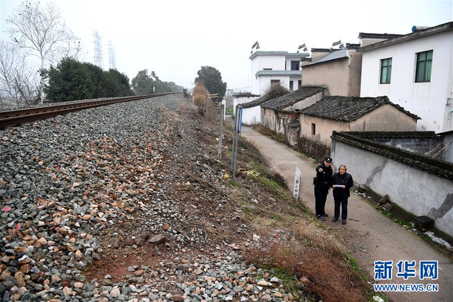 1月16日,汪茂才向鐵路沿線村民宣傳鐵路安全知識。 今年52歲的汪茂才是合肥鐵路公安處黃山站派出所歙縣警務(wù)室的一名線路民警,他所在的警務(wù)室負(fù)責(zé)皖南山區(qū)皖贛鐵路線約80公里范圍內(nèi)的線路安全。從警30年來,線路巡查、鐵路安全知識宣傳等是汪茂才的日常工作。多年來的徒步巡線,讓汪茂才練就了一雙快腿,十公里的路,汪茂才兩個小時就能走完。 汪茂才負(fù)責(zé)的鐵路沿線周邊村莊較多,很多房子都是沿鐵路線而建,有些村民為了圖方便,違規(guī)穿越鐵路線。加強(qiáng)對鐵路沿線居民的安全宣傳教育,成為汪茂才的一項(xiàng)重要工作,沿線村民的安全意識也越來越高。 對汪茂才這樣的線路民警來說,大多數(shù)時候都是“獨(dú)行俠”,“當(dāng)線路民警就要耐得住寂寞,守得住孤獨(dú),與大山為伴,與線路為友,盡己所能,為鐵路安全運(yùn)行保駕護(hù)航?!蓖裘耪f。 新華社記者劉軍喜攝