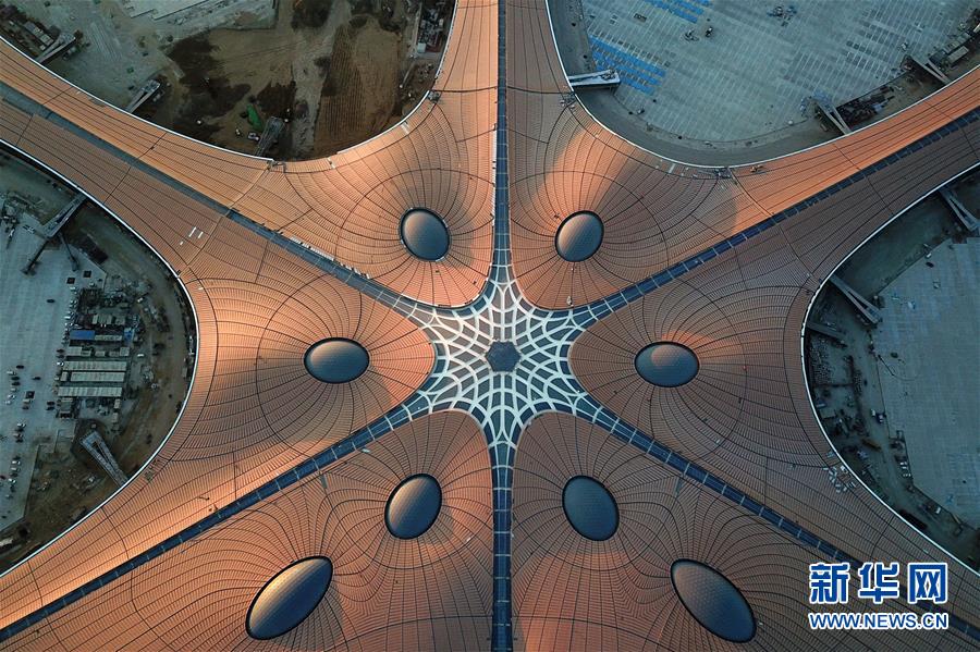 2018年12月19日,北京大興國際機(jī)場航站樓的屋面已基本完工,一只金色“鳳凰”完整地出現(xiàn)在北京城南。航站樓的室內(nèi)裝修在有條不紊的推進(jìn)中。