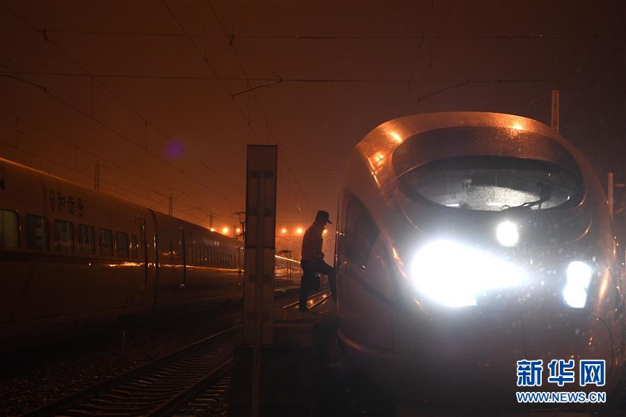 1月29日,王瑞在合肥南動車運用所登上一輛動車準備調(diào)車作業(yè)。新華社記者劉軍喜攝