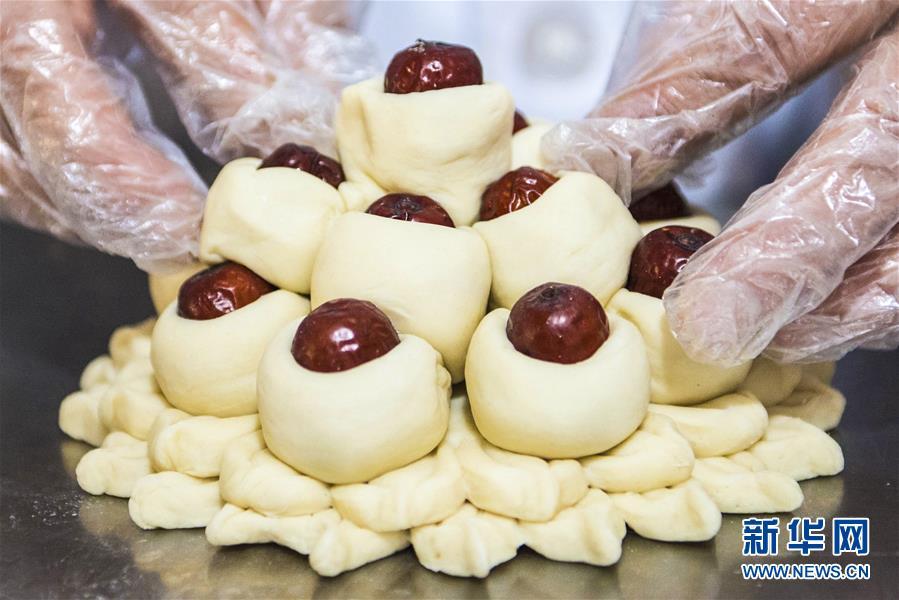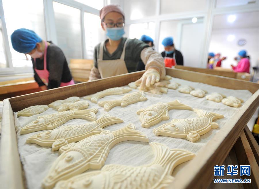1月25日,河北棗強(qiáng)一家食品公司的面點(diǎn)師在手工制作花糕。 春節(jié)臨近,河北省棗強(qiáng)縣面食加工廠的面點(diǎn)師傅們忙著趕制花糕、花饃等傳統(tǒng)面食,以供應(yīng)節(jié)日市場(chǎng)。當(dāng)?shù)赜羞^(guò)年蒸花糕、做花饃的習(xí)俗,寓意步步登高,生活一年比一年好。 新華社記者 李曉果攝