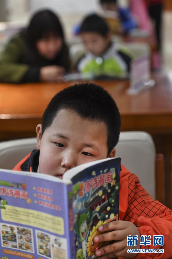2月24日,8歲的郝秋巖在府谷縣圖書(shū)館少兒閱覽區(qū)閱讀。