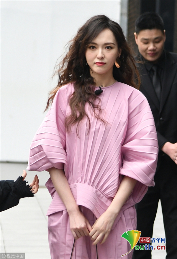 唐嫣隔玻璃比心與粉絲互動(dòng) 路人視角也美到窒息