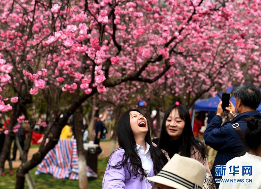 游人在昆明圓通山公園觀賞盛開的櫻花(3月16日攝)。近日,云南省昆明市迎來櫻花盛開的時(shí)節(jié)。昆明圓通山公園的數(shù)千株櫻花燦爛綻放,吸引了市民和游客前來觀花賞景。新華社記者藺以光攝