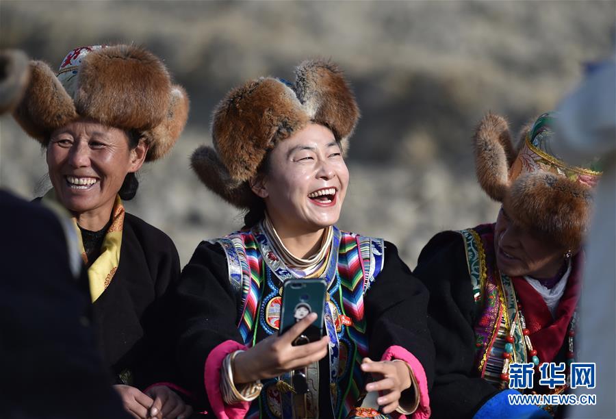 3月16日,山南市乃東區(qū)門中崗村村民在開耕儀式上。 當(dāng)日,西藏各地男女老幼身著節(jié)日盛裝,駕著一輛輛由彩旗、花朵裝扮一新的拖拉機,涌向待墾的農(nóng)田,載歌載舞迎來一年一度的開耕儀式。 新華社記者 覺果 攝