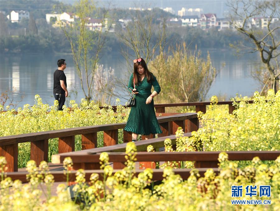 3月19日,游人在下涯鎮(zhèn)油菜花海中游玩。近日,浙江省建德市下涯鎮(zhèn)油菜花盛開,吸引不少游客前來踏春。 新華社記者翁忻旸攝