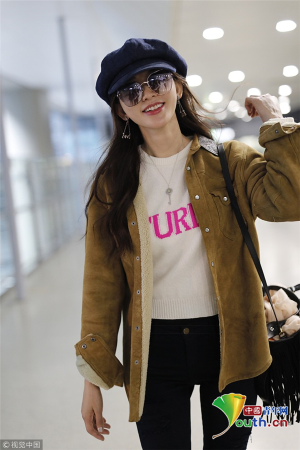 3月27日,林志玲從北京機場飛往上海機場。她穿著白毛衣搭配黑色破洞牛仔褲,秀出纖細美腿,對鏡頭微笑甜美十足。