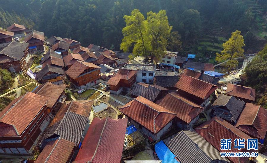 這是黔桂烏英苗寨春色(3月20日無(wú)人機(jī)拍攝)。