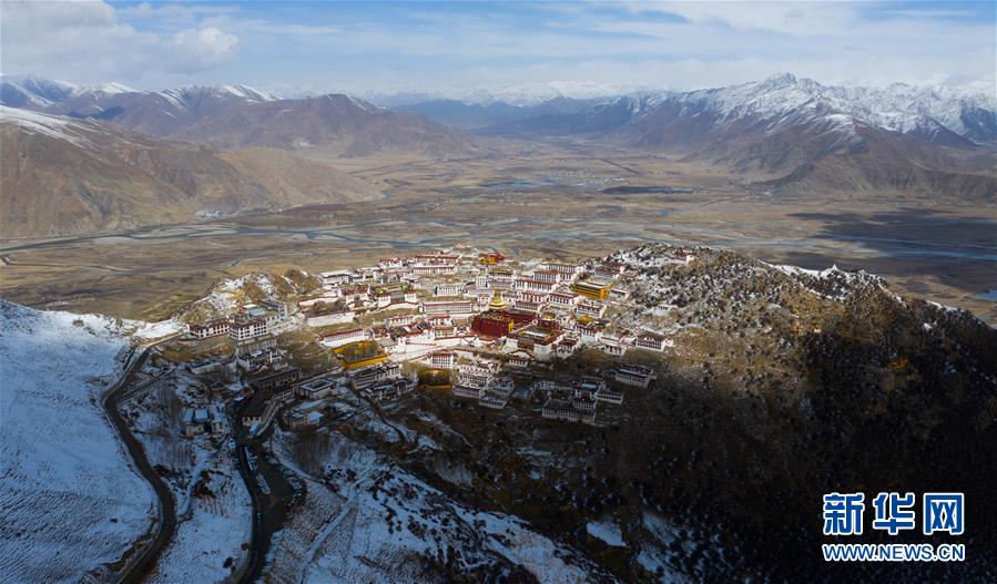 雪后的甘丹寺(4月8日無人機(jī)拍攝)。