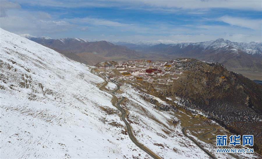 雪后的甘丹寺(4月8日無(wú)人機(jī)拍攝)。新華社記者普布扎西攝