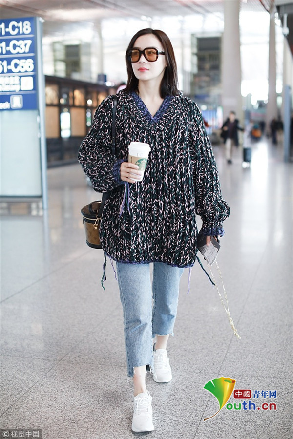 2019年4月10日,北京,袁姍姍現(xiàn)身機場。她穿碎花毛衣低調(diào)玩文藝,戴茶色墨鏡手捧咖啡,露腳踝美腿纖細,休閑打扮隨意又愜意,時尚有型舒適十足。