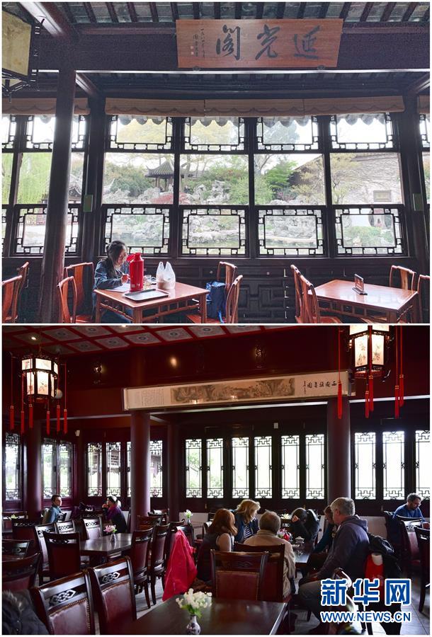 這張拼版照片展示的是:上圖,2019年4月2日,游客在中國蘇州留園內(nèi)游覽(新華社記者杜涓涓攝);下圖,2017年9月23日,在美國紐約寄興園舉行的迎中秋活動上,孩子們在志愿者的帶領(lǐng)下參觀(新華社記者王迎攝)。