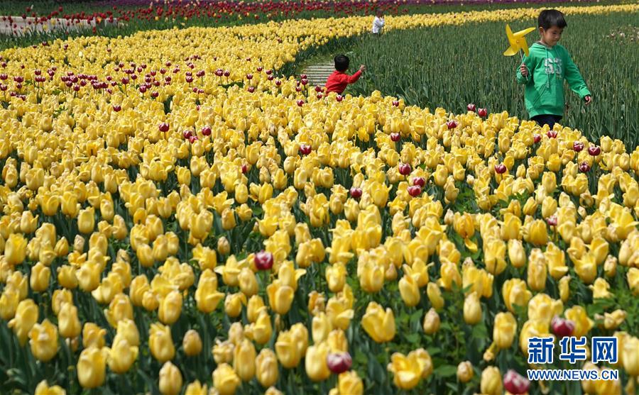 4月14日,游客在位于湖北省十堰市茅箭區(qū)的秦巴生態(tài)植物園內(nèi)游玩。近日,位于湖北省十堰市茅箭區(qū)的秦巴生態(tài)植物園內(nèi),200萬株郁金香競相開放,吸引游客前來賞花游覽。 新華社記者 程敏 攝
