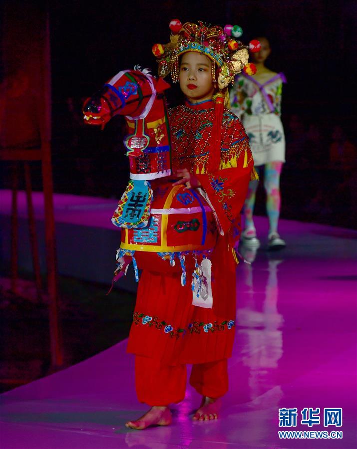 4月27日,小模特身穿民族服飾展示土樓當(dāng)?shù)氐姆俏镔|(zhì)文化遺產(chǎn)竹馬戲。 當(dāng)日,土樓光語國際時尚大秀在福建省南靖縣的土樓裕昌樓內(nèi)舉行。這場融匯文化、時尚與旅游元素的大秀,通過傳統(tǒng)與時尚的有機(jī)融合,展現(xiàn)南靖土樓及文化的魅力和風(fēng)采。 新華社記者魏培全攝