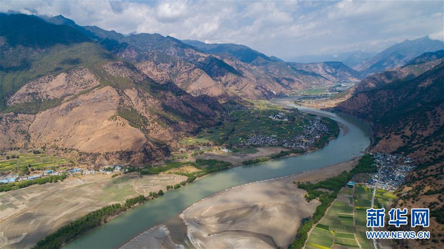 這是無人機拍攝的“長江第一灣”一景(3月17日攝)。“長江第一灣”位于云南省麗江市玉龍納西族自治縣石鼓鎮(zhèn),萬里長江從青藏高原奔騰而下,與瀾滄江、怒江一起在橫斷山脈的高山深谷中穿行形成并流的壯麗景觀。金沙江在麗江石鼓鎮(zhèn)突然以急轉(zhuǎn)彎轉(zhuǎn)向東北,形成一個宛若“V”字形的大轉(zhuǎn)彎,得名“長江第一灣”。春日里,“長江第一灣”江水青碧,美景迷人。 新華社記者胡超攝