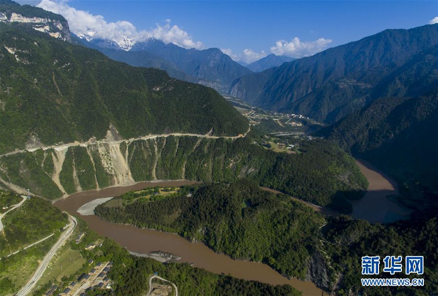 這是無人機拍攝的“長江第一灣”一景(3月17日攝)?!伴L江第一灣”位于云南省麗江市玉龍納西族自治縣石鼓鎮(zhèn),萬里長江從青藏高原奔騰而下,與瀾滄江、怒江一起在橫斷山脈的高山深谷中穿行形成并流的壯麗景觀。金沙江在麗江石鼓鎮(zhèn)突然以急轉(zhuǎn)彎轉(zhuǎn)向東北,形成一個宛若“V”字形的大轉(zhuǎn)彎,得名“長江第一灣”。春日里,“長江第一灣”江水青碧,美景迷人。 新華社記者胡超攝
