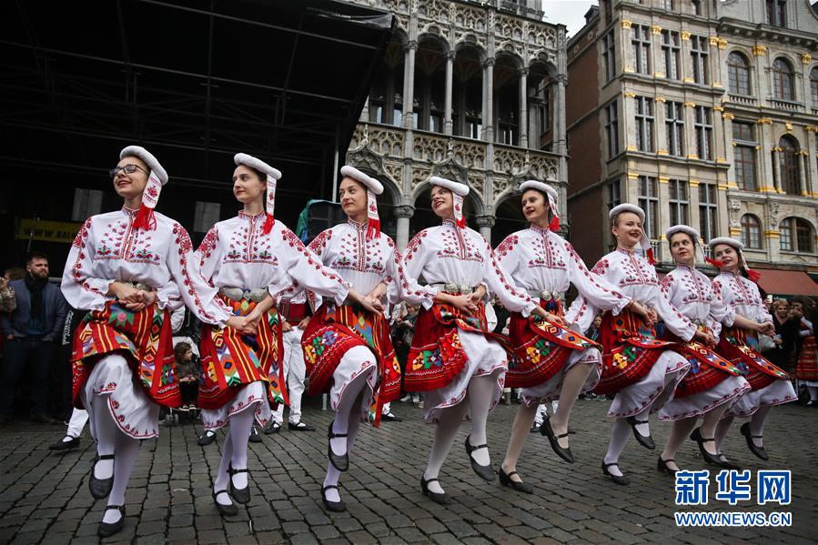 4月28日,在比利時(shí)布魯塞爾大廣場(chǎng),演員表演保加利亞的民族舞蹈。 當(dāng)日,來(lái)自歐洲多個(gè)國(guó)家的表演者在比利時(shí)布魯塞爾大廣場(chǎng)載歌載舞,慶祝為期五天的2019年巴爾干文化藝術(shù)節(jié)圓滿(mǎn)落幕。該文化藝術(shù)節(jié)旨在用音樂(lè)、舞蹈、文學(xué)、街頭藝術(shù)等方式向公眾展現(xiàn)東南歐巴爾干半島地區(qū)的民族文化風(fēng)情。 新華社記者鄭煥松攝