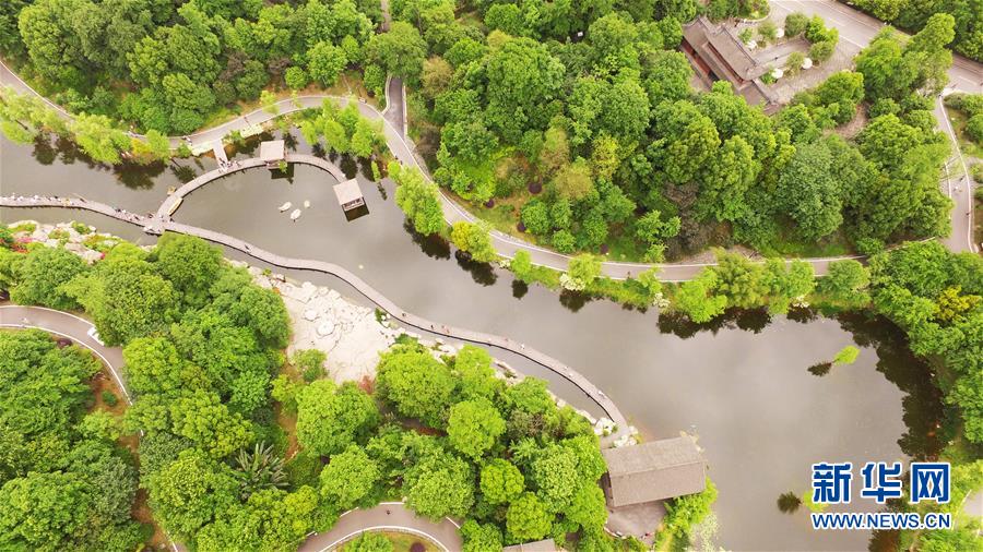 這是5月1日無人機拍攝的重慶璧山觀音塘濕地公園景象。