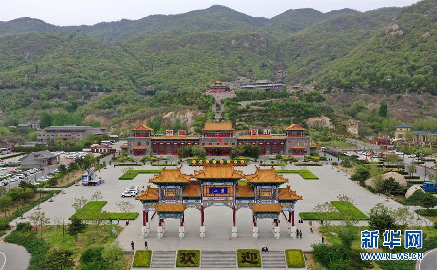 這是4月19日拍攝的盤山風景名勝區(qū)正門景觀(無人機拍攝)。新華社記者 李然 攝