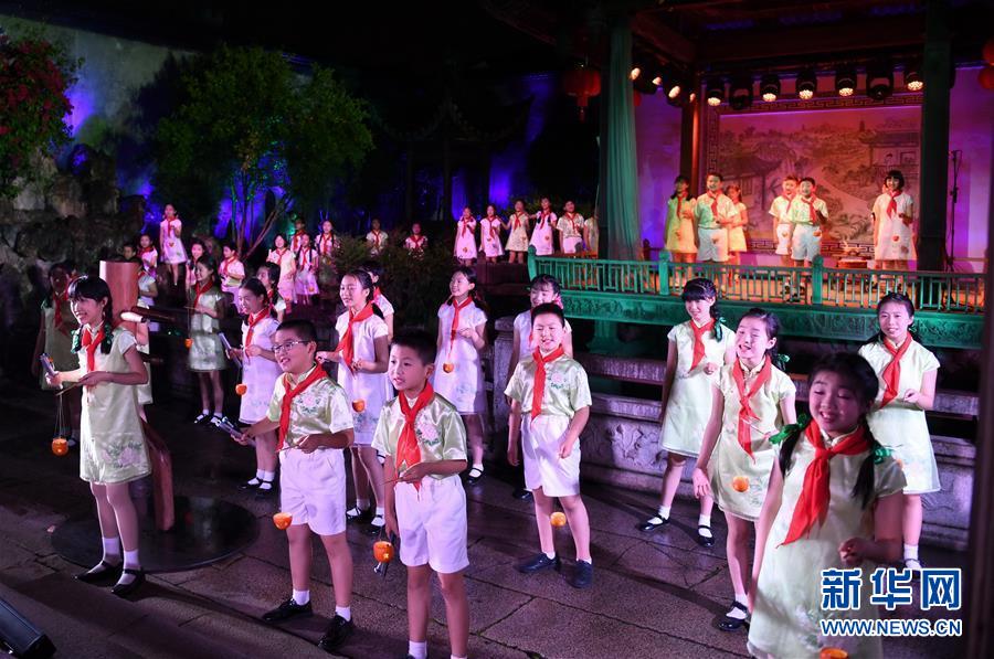 5月5日,小學(xué)生在福州三坊七巷的水榭戲臺(tái)表演。 福州三坊七巷為國(guó)內(nèi)現(xiàn)存規(guī)模較大、保護(hù)較為完整的歷史文化名街區(qū),是中國(guó)十大歷史文化名街之一。位于三坊七巷內(nèi)的水榭戲臺(tái)經(jīng)常舉辦傳統(tǒng)文化演出吸引游客慕名前來觀賞。 新華社記者 林善傳 攝