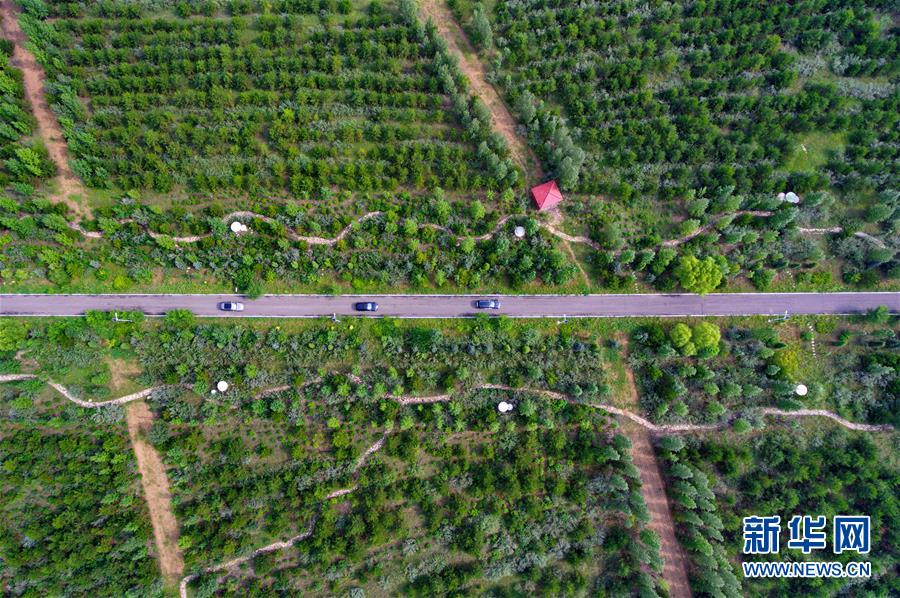這是2018年8月7日無人機(jī)拍攝的山西省右玉縣小南山森林公園。新華社記者 曹陽 攝