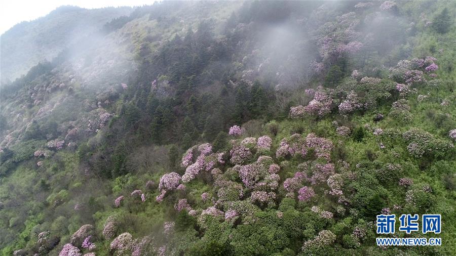 神農(nóng)架神農(nóng)頂景區(qū)盛開的高山杜鵑(5月13日無人機拍攝)。 新華社記者 杜華舉 攝