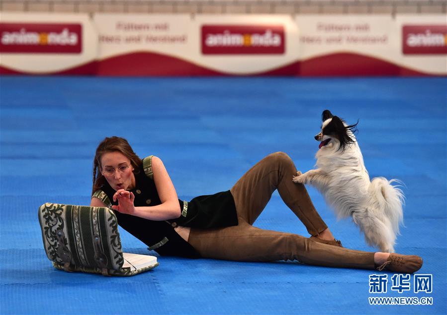 5月19日,在德國(guó)多特蒙德舉行的寵物展上,一名女士帶著愛(ài)犬參加寵物跳舞比賽。 為期三天的德國(guó)多特蒙德“狗和貓”寵物展19日落幕。寵物展期間,人們帶著自己的“萌寵”來(lái)到會(huì)場(chǎng),參與寵物跳水、舞蹈、選美等趣味比賽,并與其他寵物愛(ài)好者及展商交流互動(dòng)。 新華社記者逯陽(yáng)攝