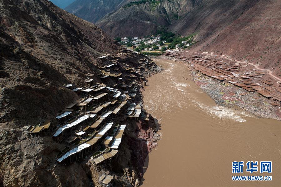 這是西藏芒康縣納西民族鄉(xiāng)的古鹽田景觀(5月22日無(wú)人機(jī)拍攝)。位于西藏昌都芒康縣瀾滄江畔的古鹽田,至今仍保持最原始的手工曬鹽方式。據(jù)史料記載,唐朝時(shí)期當(dāng)?shù)鼐烷_(kāi)始曬鹽。鹽田在瀾滄江兩岸依山而建,由多根木柱搭架,架上用透水性強(qiáng)的泥土鋪成平面夯實(shí),當(dāng)?shù)鼐用駨臑憸娼系柠}井、鹽池中取出鹵水倒入鹽田,經(jīng)陽(yáng)光蒸曬、風(fēng)干,結(jié)晶成鹽。遠(yuǎn)遠(yuǎn)望去,鹽田錯(cuò)落有致,田中鹵水宛若鏡面,形成壯麗奇觀。新華社記者李鑫 攝