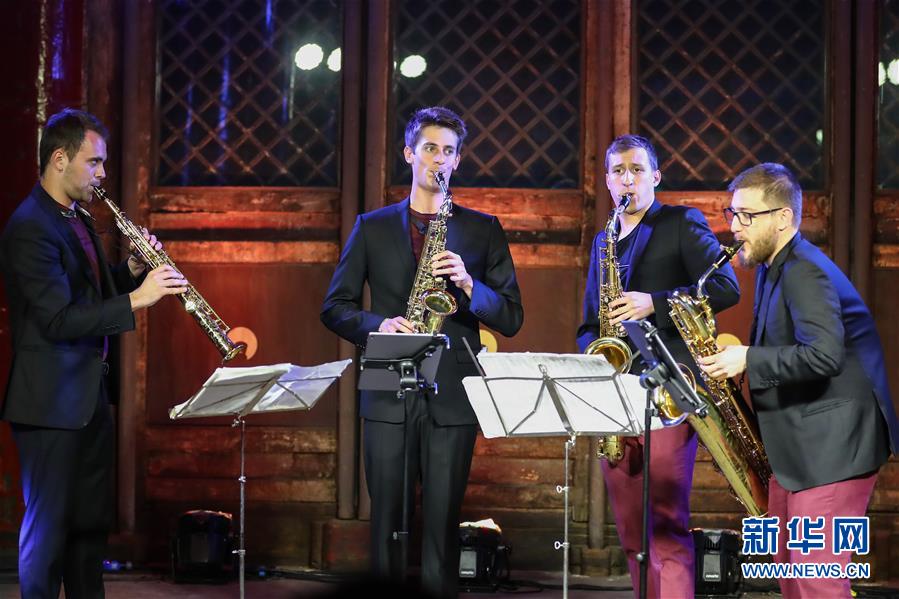5月26日,凱比亞特樂隊成員在音樂會上表演。 當日,作為第十九屆“相約北京”藝術節(jié)系列演出之一,西班牙凱比亞特樂隊薩克斯四重奏音樂會在北京Temple東景緣上演。 新華社記者 張玉薇 攝