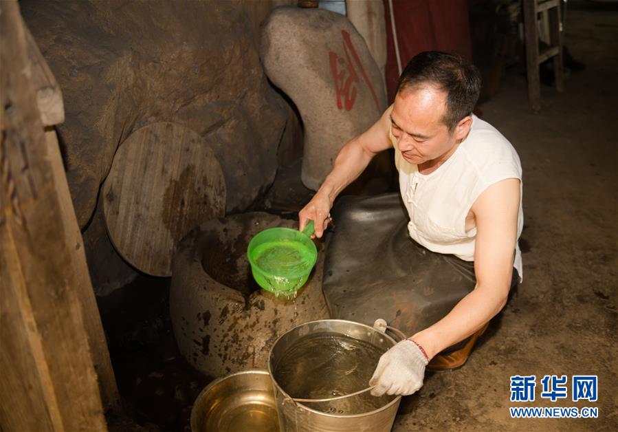 5月21日,鄭國(guó)榮在“古越劍鋪”打井水準(zhǔn)備為寶劍淬火。他說淬火用的水很重要,正是看中了這口井他才把工作室設(shè)在這里。  新華社記者 翁忻旸 攝
